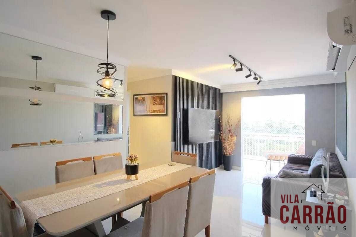 Lindo apartamento com 80 m², 3 dormitórios, sendo 1 Suíte, Ar Condicionado na Sala e dormitórios, sala para 2 ambientes integrada a uma ampla Varanda Grill (Pode colocar Churrasqueira ecológica ou elétrica), ótima cozinha planejada, banheiro social e área de serviço 2 excelentes Vagas de Garagem cobertas e fixas.