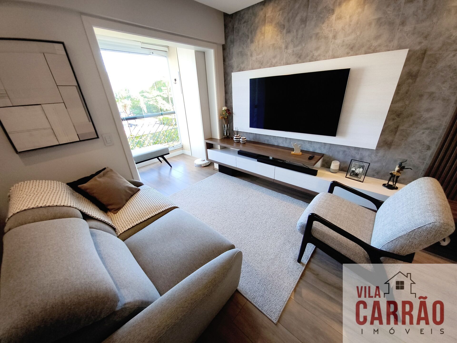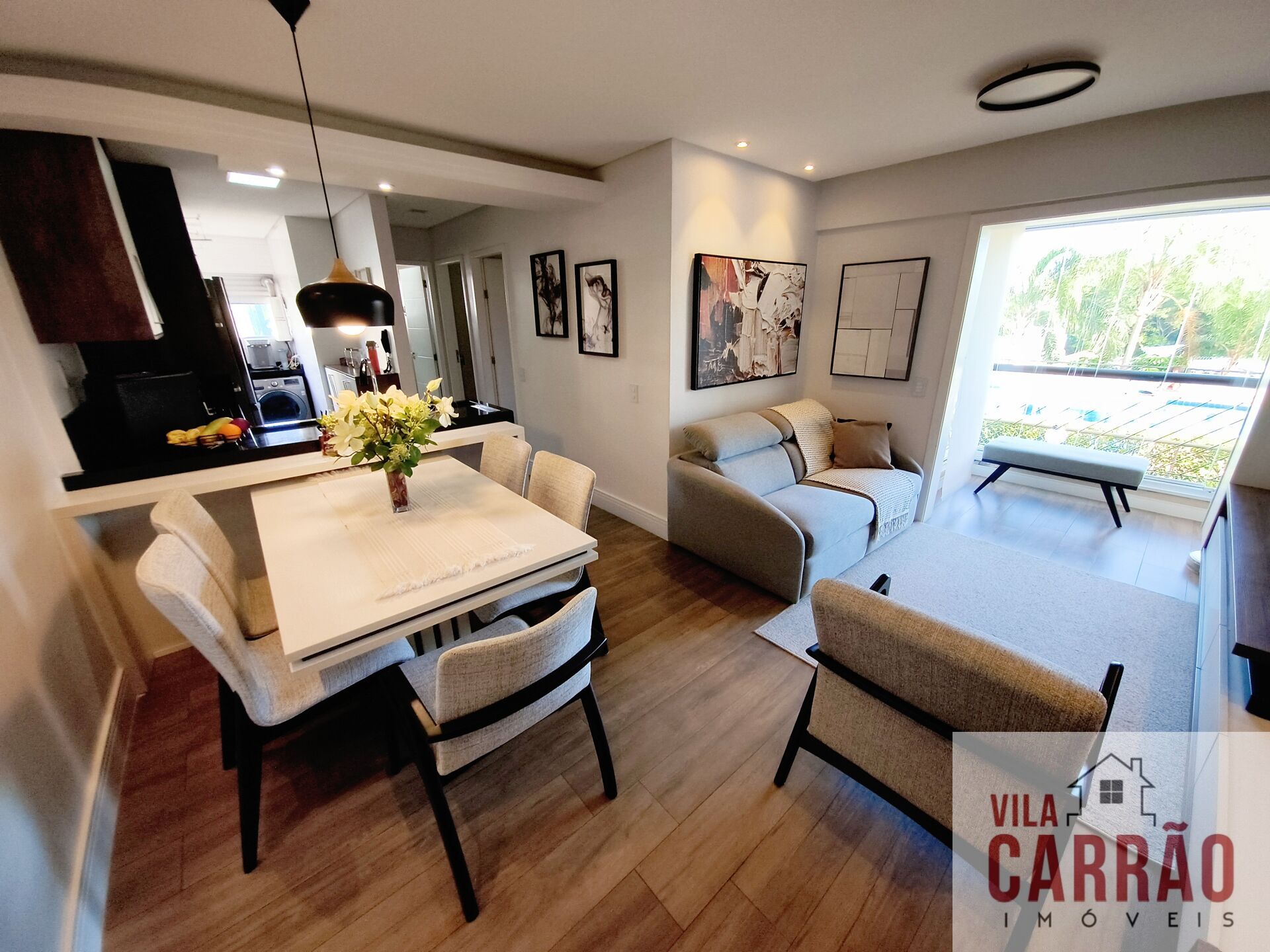 Excelente apartamento TODO PLANEJADO com ACABAMENTO FINO. Possui 2 dormitórios espaçosos, banheiro social, sala 2 ambientes integrada com a sacada fechada em vidros, cozinha planejada em estilo americano e área de serviço.