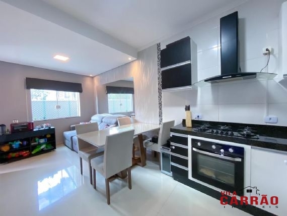 Lindo sobrado em condomínio com 2 ótimas suítes com móveis planejados, sala 2 ambientes com painel planejado, integrado à belíssima cozinha, repleta de móveis planejados e já com forno e cooktop embutidos, área de serviço (também com planejados) e lavabo. Possui 2 ótimas vagas de garagem cobertas e livres.