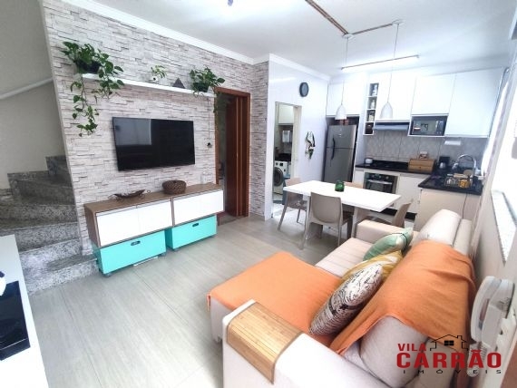 Belíssimo sobrado em condomínio na Vila Carrão, com 2 dormitórios, sala integrada à cozinha, totalmente planejada, banheiro social, lavabo e área de serviço. Possui 1 vaga de garagem coberta, livre e demarcada.
